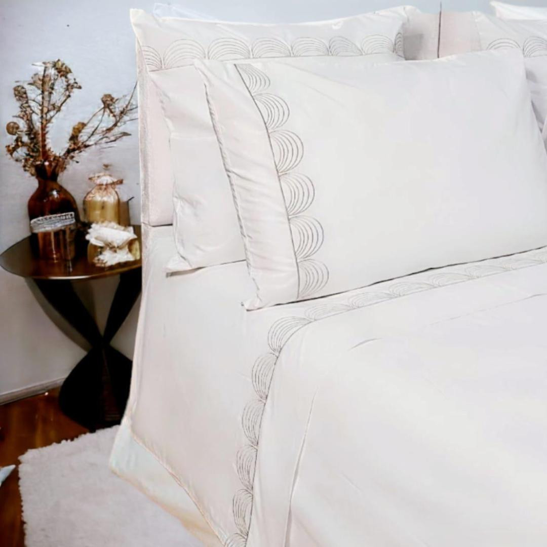 Housse de couette brodée, 100% coton percale égyptien, fibres longues.Ouverture cheminée.