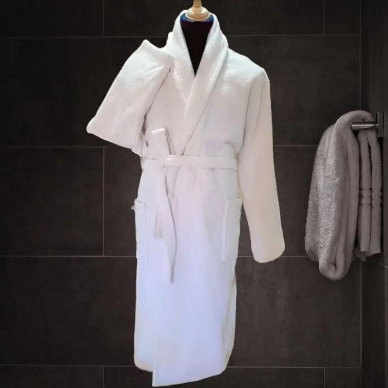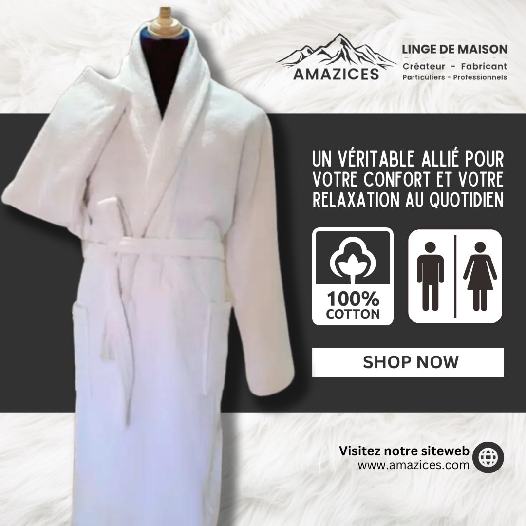 Ce peignoir col châle long en 100% coton peigné de 600 g/ m² est un symbole de luxe et de confort, adapté aussi bien pour les hommes que pour les femmes.
