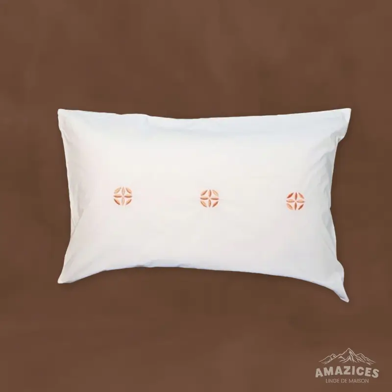 Taie d'oreiller brodée, 100% coton percale égyptien, longues fibres.